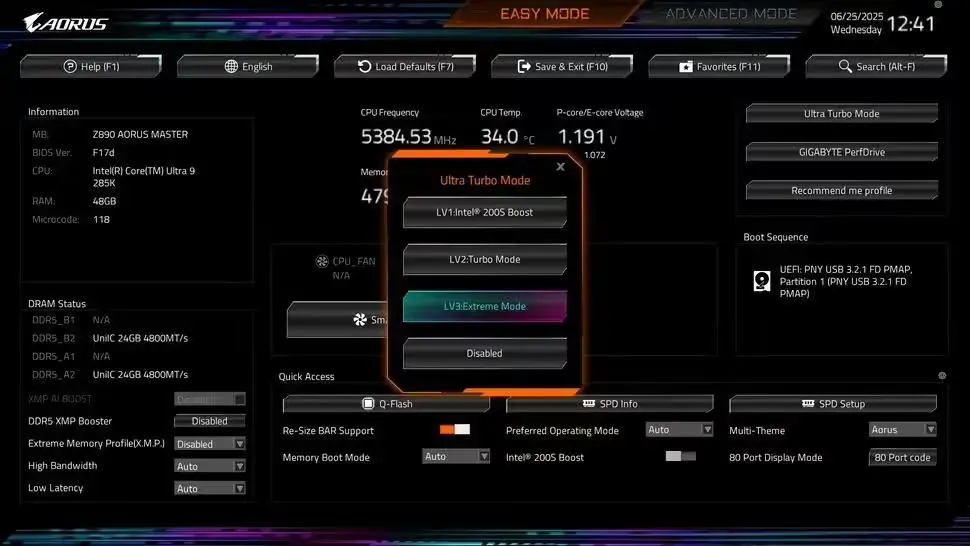 6 月 28 日消息,科技媒体 Tom's Hardware 昨日(6 月 27 日)发布博文,报道称技嘉(Gigabyte)为支持英特尔酷睿 200S 处理器的 Z890 系列主板,推出了 Ultra Turbo Mode 模式,游戏帧率最高提升 35%。