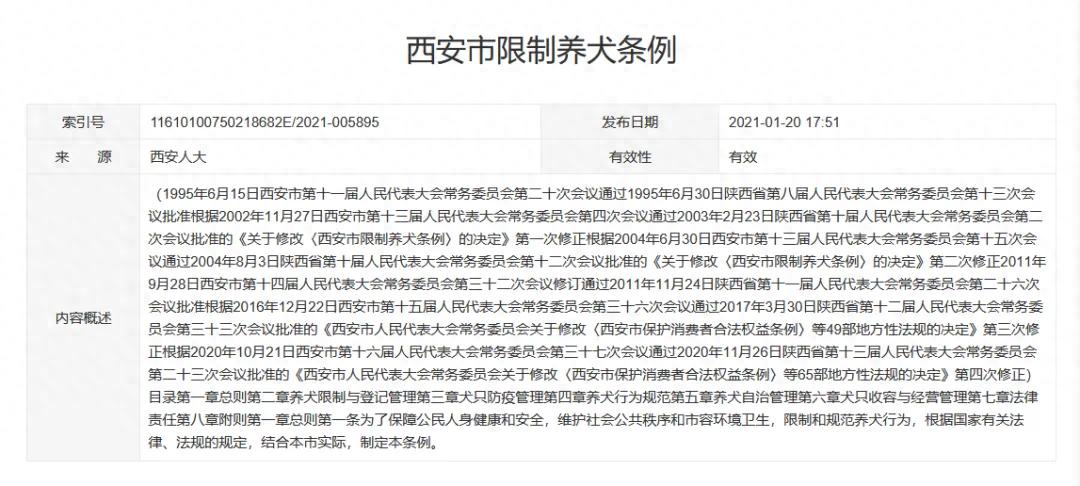 西安市城管局工作人员表示,目前西安市实施的是《西安市限制养犬条例》,该办法从2012年2月1日开始实施。