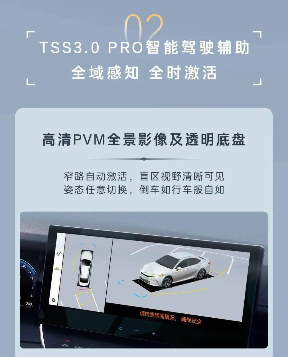 配置上,新增版本搭载了TSS3.0 PRO驾驶辅助系统,有全景影像+透明底盘,窄路还会自动激活,保证安全通行。另外,PKSB智能泊车制动辅助升级,盲区物体/车辆/行人实时追踪,遇险智能刹停。
