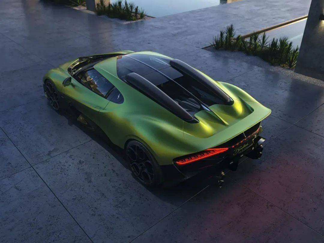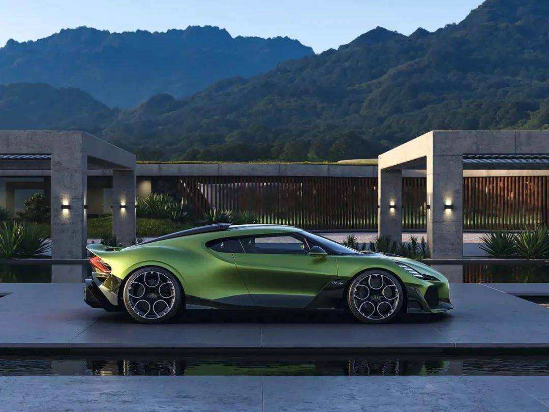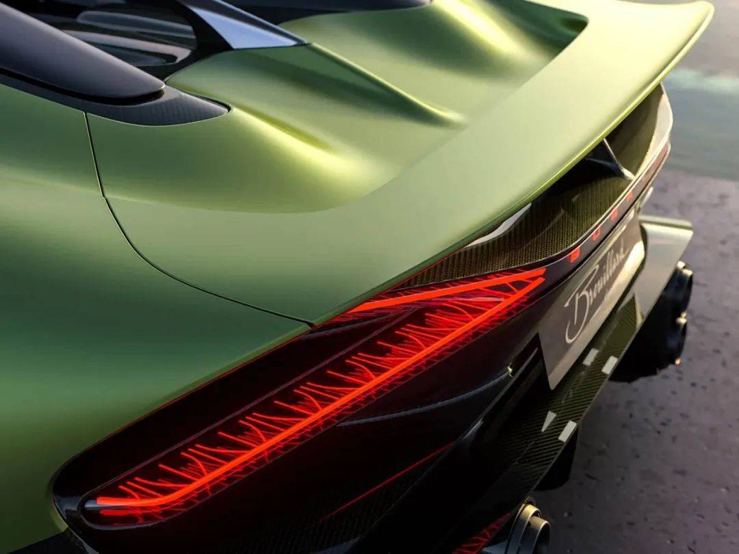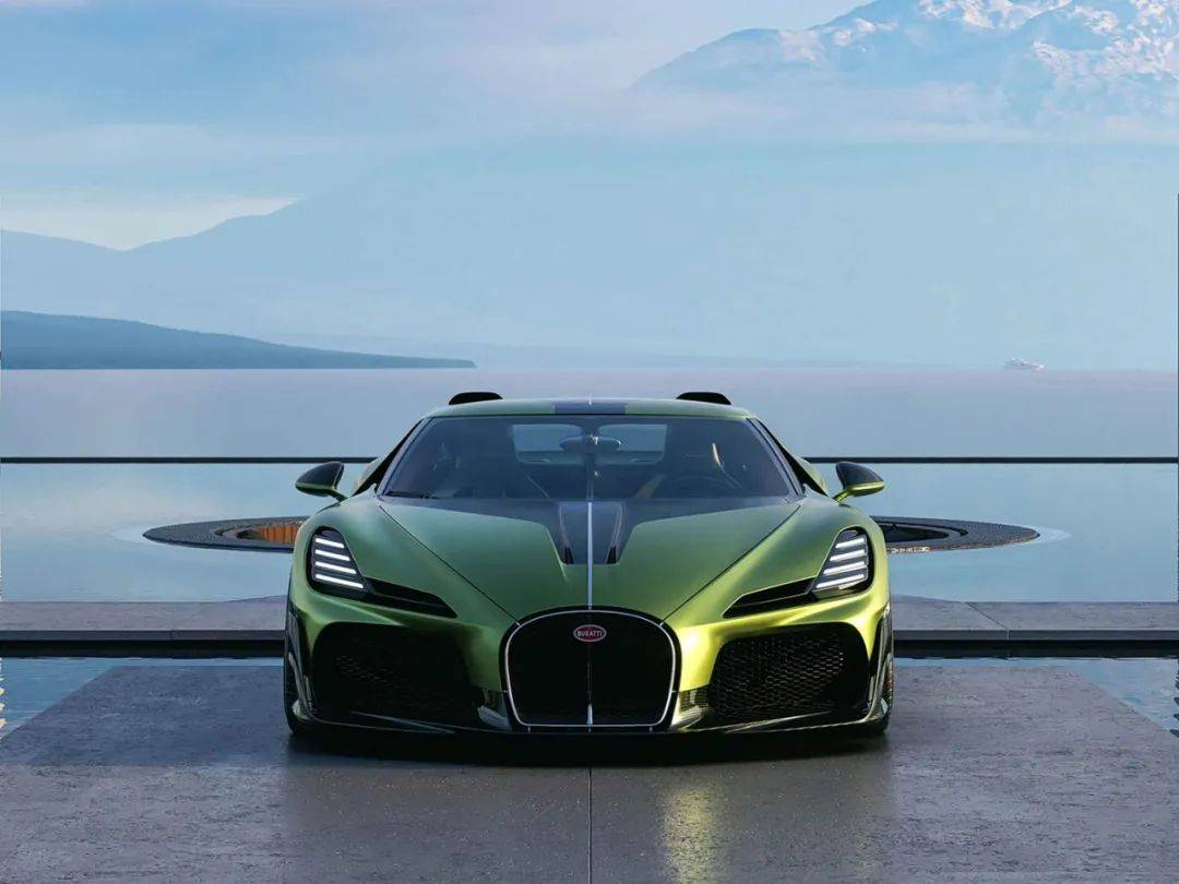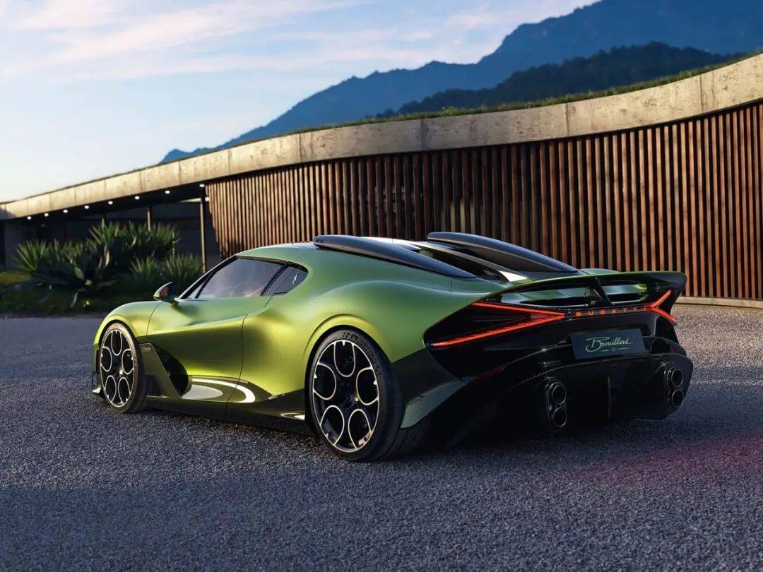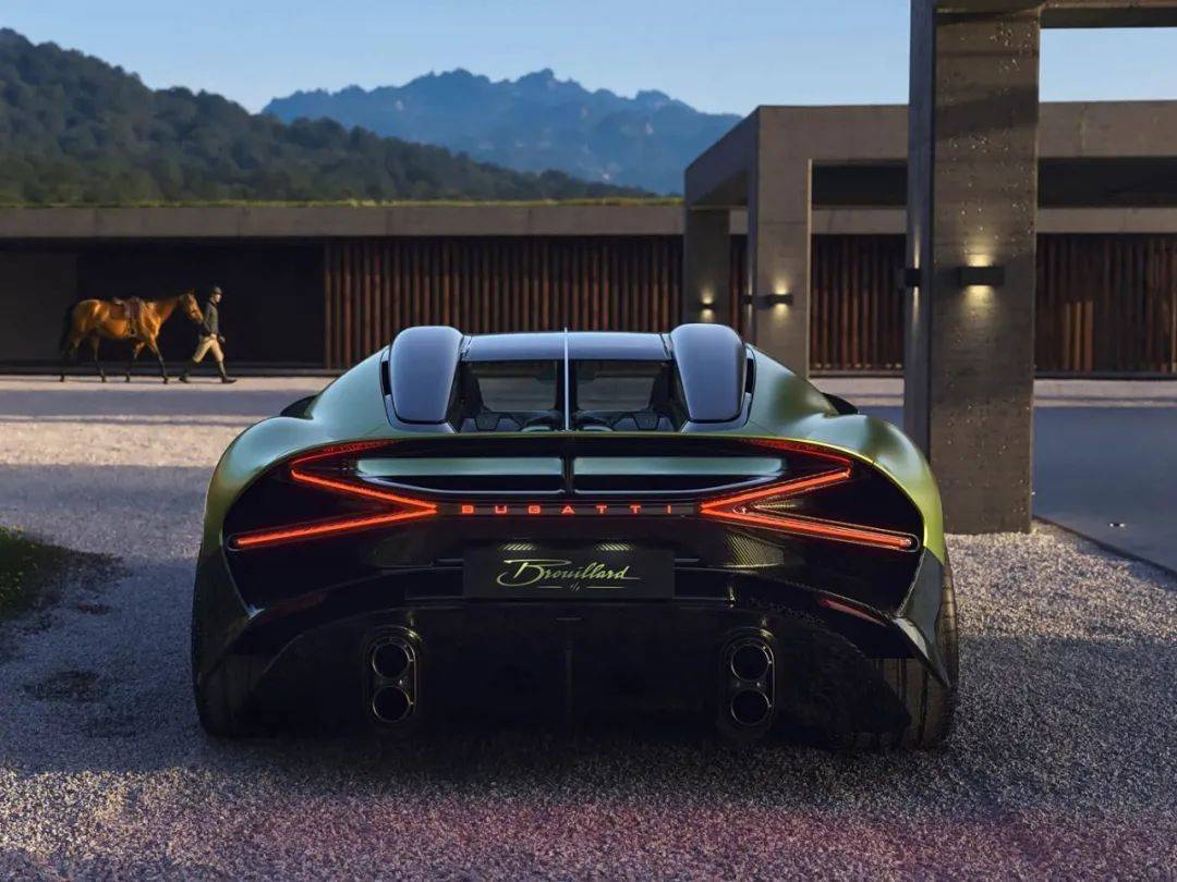 车尾设计融合了布加迪多个经典元素:尾灯延续Mistral的“X”型光效与可发光“BUGATTI”标识;固定式鸭尾扰流板借鉴自Chiron Profilée;双层碳纤维扩散器经优化设计,强化车底气流管理,提升地面效应;排气系统则采用来自Chiron SuperSport 300+的纵向布局双边四出结构,尽显战斗气息。整车最终以深邃的深绿色涂装收笔,宛如夏日晨雾中若隐若现的神秘身影。