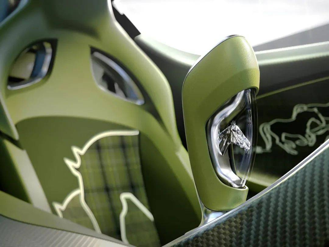 最令人叹为观止的是一体式铝制变速箱挡把,其内部嵌入透明玻璃舱,舱中安放一座手工雕塑的马头艺术品,将机械美学与雕塑艺术推向极致。