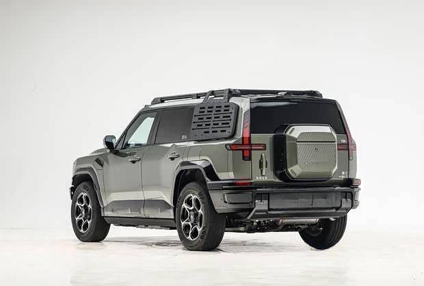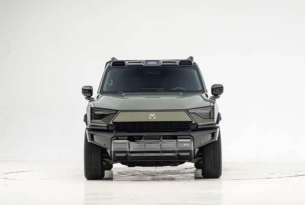 从外观设计来看,猛士M817采用了品牌最新的雄魂美学2.0设计语言。前脸部分,窄条幅梯形进气格栅搭配多边形止戈为武2.0大灯组,配合中央可发光品牌标识,展现出强烈的视觉冲击力。车身提供多达6种配色可选,包括秦岭绿、玉龙银等个性化选择。