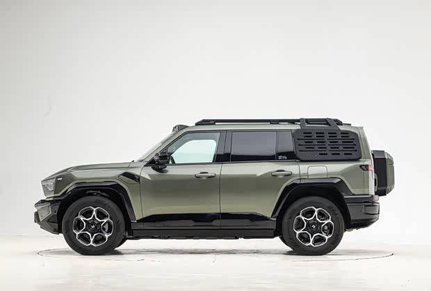 车身侧面线条充满力量感,突出的轮眉设计搭配防擦护板和密辐式轮圈,彰显出硬派SUV的野性气质。新车的长宽高分别为5100/1998/1899mm,轴距达到3005mm。越野参数方面,接近角、离去角均为31°,纵向通过角20°,最小离地间隙237mm,最大涉水深度达820mm。