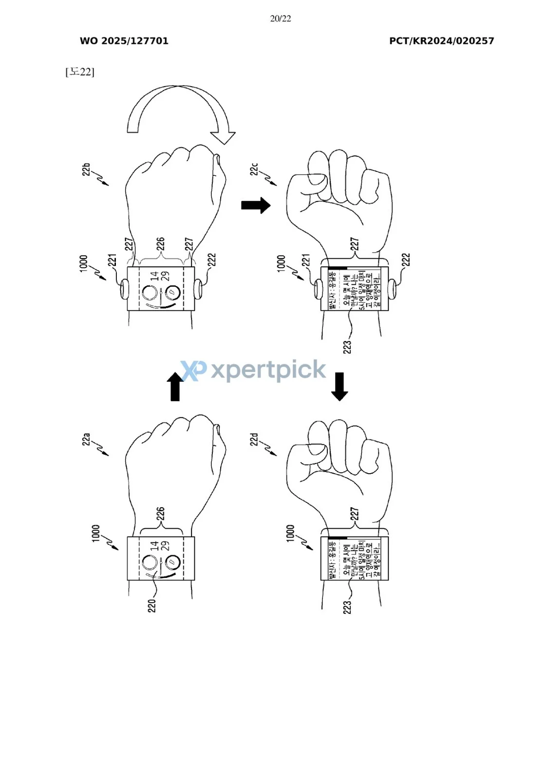 图纸中另一个有趣的细节是手表界面可根据手腕方向自动调整。在部分图片中,显示元素会根据用户的手腕位置旋转或移动,这可能意味着界面会自动适应用户的手腕姿势,从而在不同位置更易阅读或交互内容。
