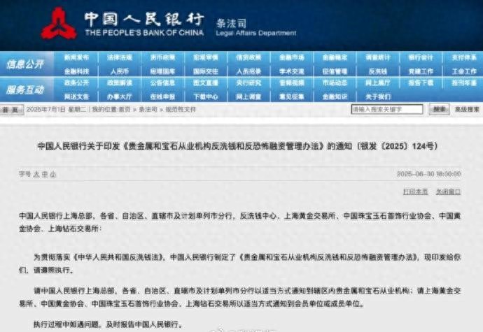 贵金属交易存在交易金额大、现金交易比例高等特点,国际社会普遍将其视为洗钱和恐怖融资高风险领域。上述《办法》自2025年8月1日起正式施行,旨在通过建立系统化监管框架,防范贵金属与宝石交易领域的洗钱及恐怖融资风险。