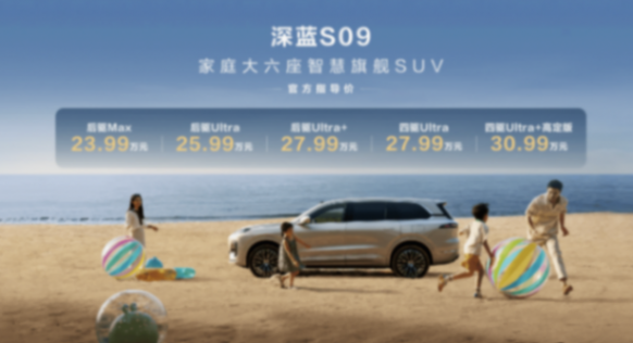 深蓝S09定价23.99万-30.99万元,显著低于理想L9、问界M9等竞品,邓承浩意图通过“7系价格提供9系产品力”实现错位竞争。他曾多次明确表示,深蓝S09的目标是占据大六座SUV市场20%-30%的份额。他判断该细分市场月销规模为“几万台”,而按照邓总的说法,深蓝S09的月销应该在8000甚至是10000台以上,但就最终的交付数据来说,可以说远远没达到预期。