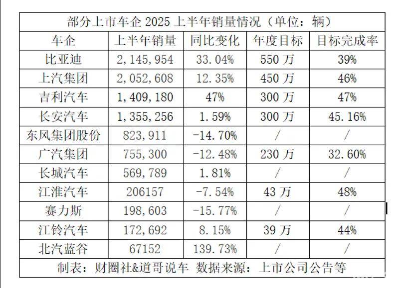 2025年上半年的汽车行业,很热闹!当然,内卷卷出了什么,吵架又吵出了什么,一切的一切体现在车企们的实际销量中。近日,国内部分上市车企的2025年上半年销量陆续出炉,《财圈社&道哥说车》编辑统计了A/H股部分上市车企的销量情况(不含造车新势力),各家车企悲欢并不相同。