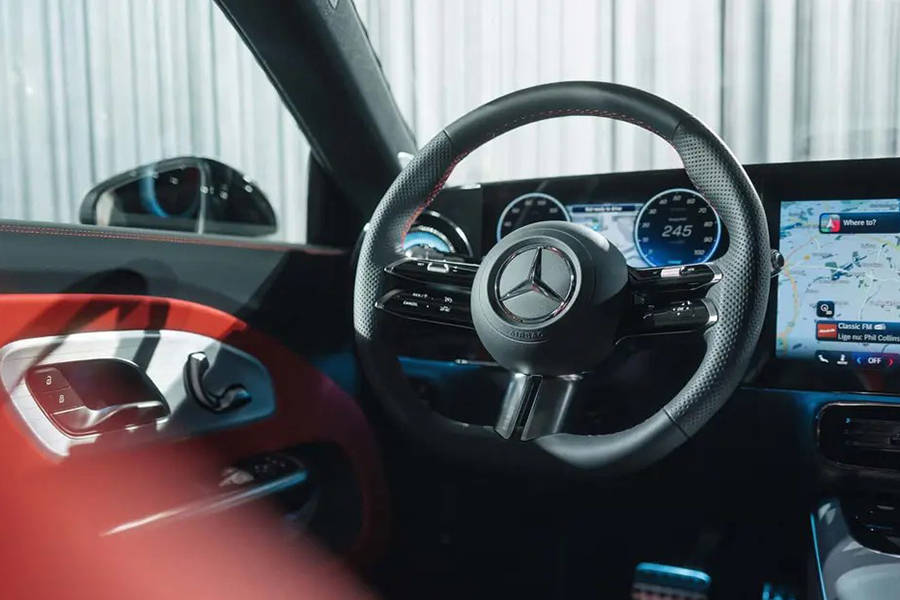 全新奔驰CLA猎装版配备了一体式全景天窗,从挡风玻璃框架一直延伸到黑色后扰流板。新车搭载隔热夹层安全玻璃,内侧采用红外反射和低辐射(LowE)涂层,在夏季能够有效隔绝热量,在冬季还能减少热量流失。新的全景玻璃车顶镶嵌了158颗 “星徽” 灯饰,可与车内氛围灯实现色彩联动。
