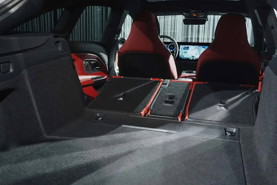 作为猎装版车型,新车的后备厢空间优势明显。全新奔驰CLA猎装版的后排座椅支持40:20:40比例放倒,放倒后的后备厢容积由455L拓展至1290L。此外,作为电动版车型,新车还新增了一个容积为101L的前备厢。