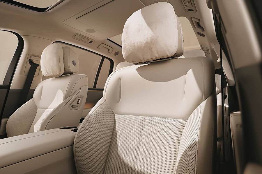 从此次官方发布的图片来看,该车依旧沿用理想家族式设计语言,三辐式多功能方向盘搭配由大尺寸中控屏+副驾娱乐屏组成的一体式连屏,整体尺寸或有望进一步加大。同时,该车中控台T字区域配备双手机无线充电、双杯架以及储物槽等,提升储物空间。与此同时,其副驾座椅上配备老板键,更便于驾驶员操控副驾驶座椅调整。
