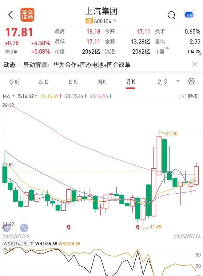 不知是否与华为合作的第一款车首次亮相,上汽集团股价应声拉升。