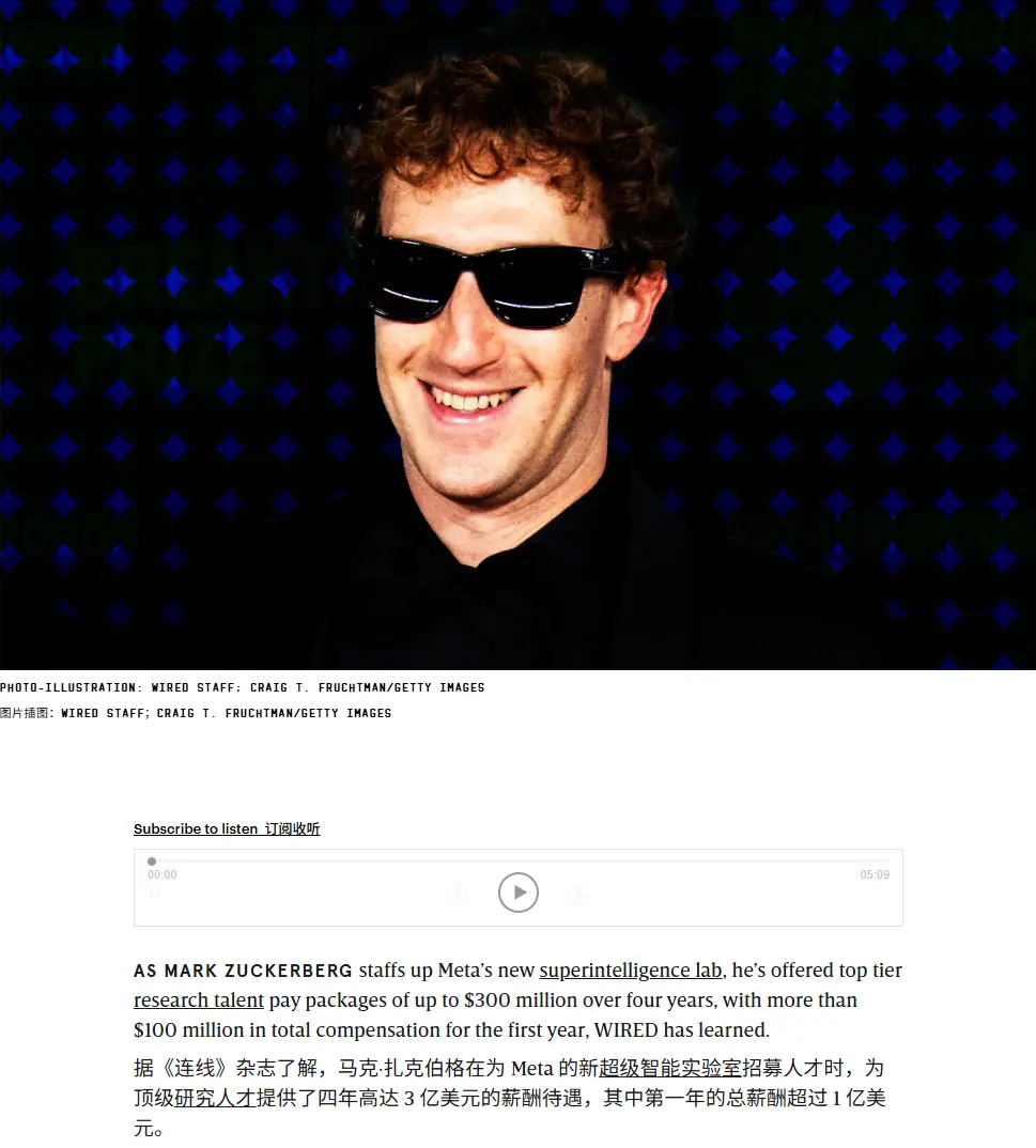 外媒接着爆猛料,说Meta为了挖顶级AI人才,直接能开出四年3亿美元的天价,其中光是第一年,薪酬就能直接破亿。
