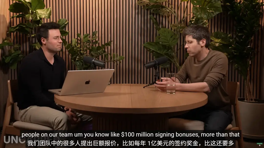 奥特曼在一档播客节目里也提到过,Meta给他团队里的很多人都提出过每年一亿美金的签约奖金。
