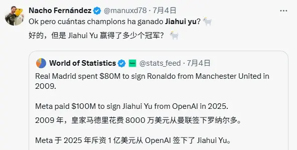 有网友直接一张对比图甩出来,C罗转会才8000万,你小子比C罗还牛逼?