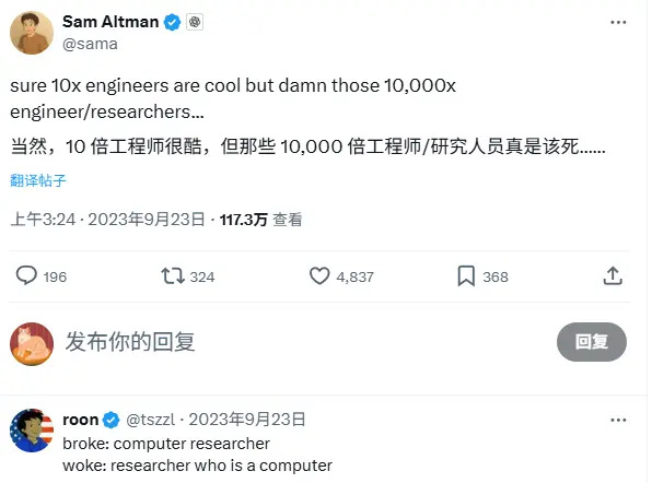 OpenAI的奥特曼,更是直接把这批人称为“万倍工程师”。意思是,一个顶尖AI工程师,他一个人干的活,能顶一万个普通码农...
