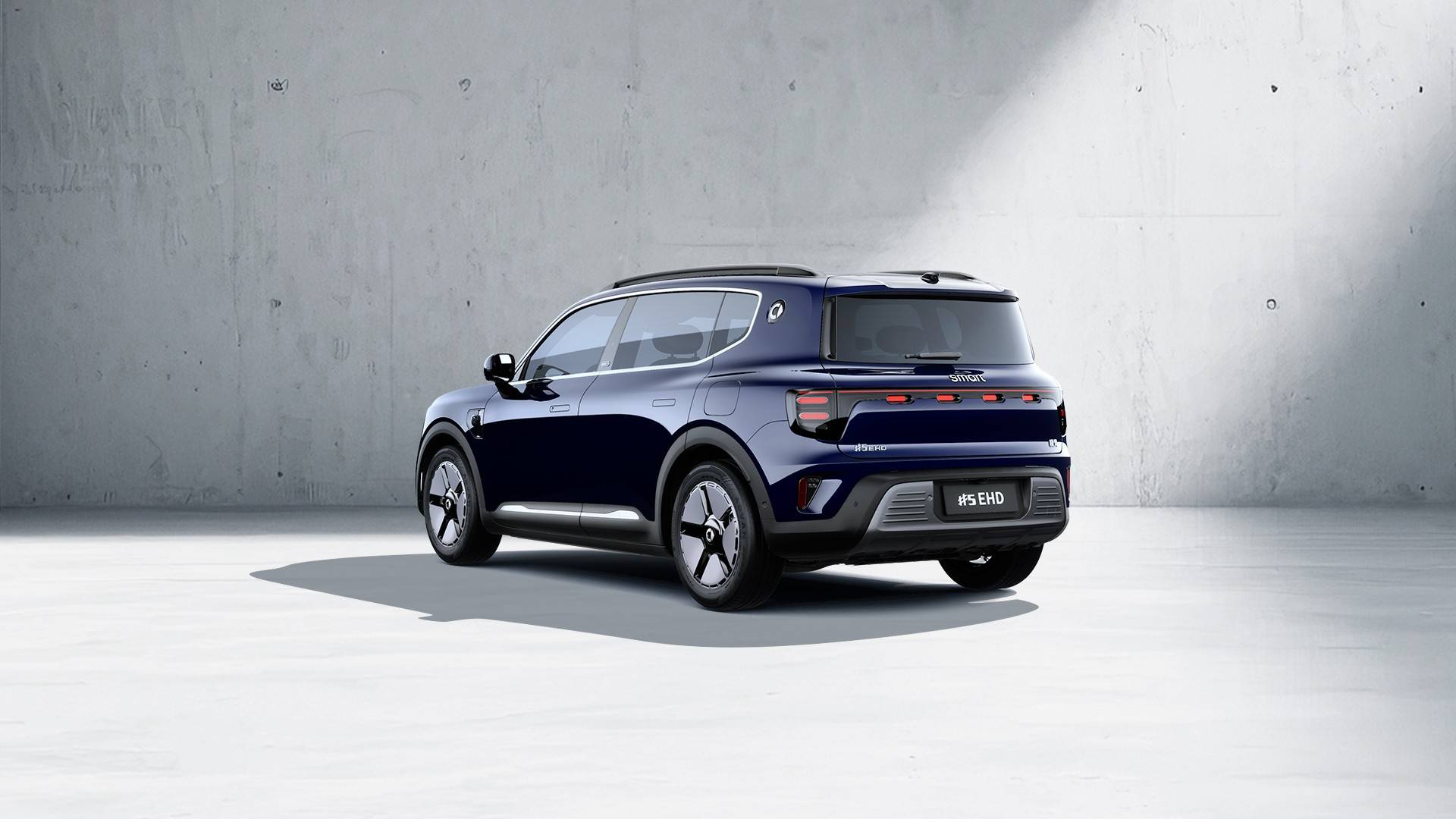 外观方面,smart精灵#5 EHD依旧延续了“感性·灵锐”的设计哲学。整体造型更显方正。前两部分,新车采用了赛博光影贯穿式LED矩阵大灯,内部则融入了“时空胶囊”的造型,设计感十足。