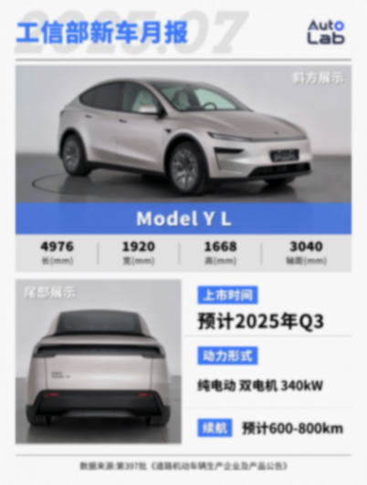 尺寸方面,新车相比5座版Model Y要大了一圈。