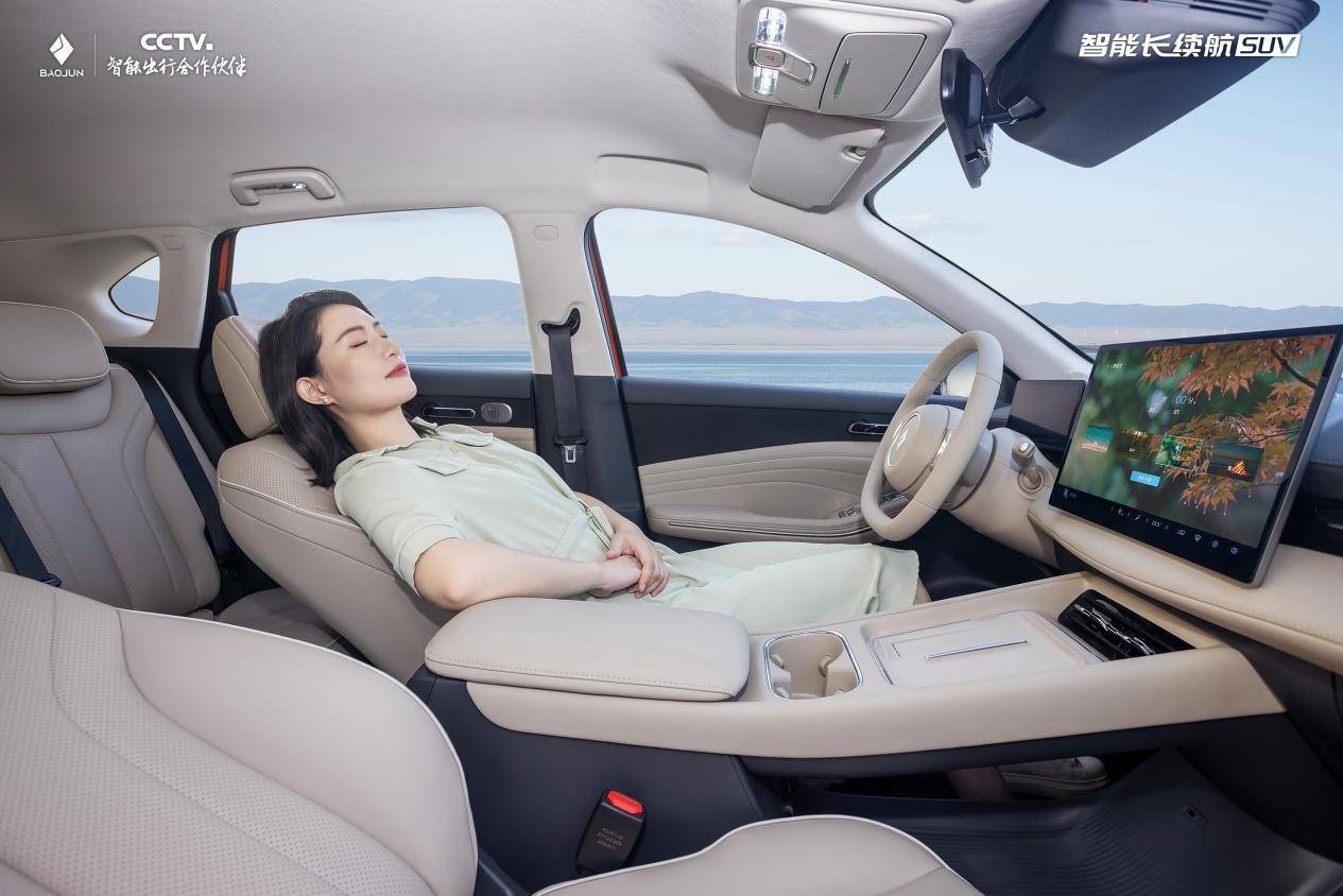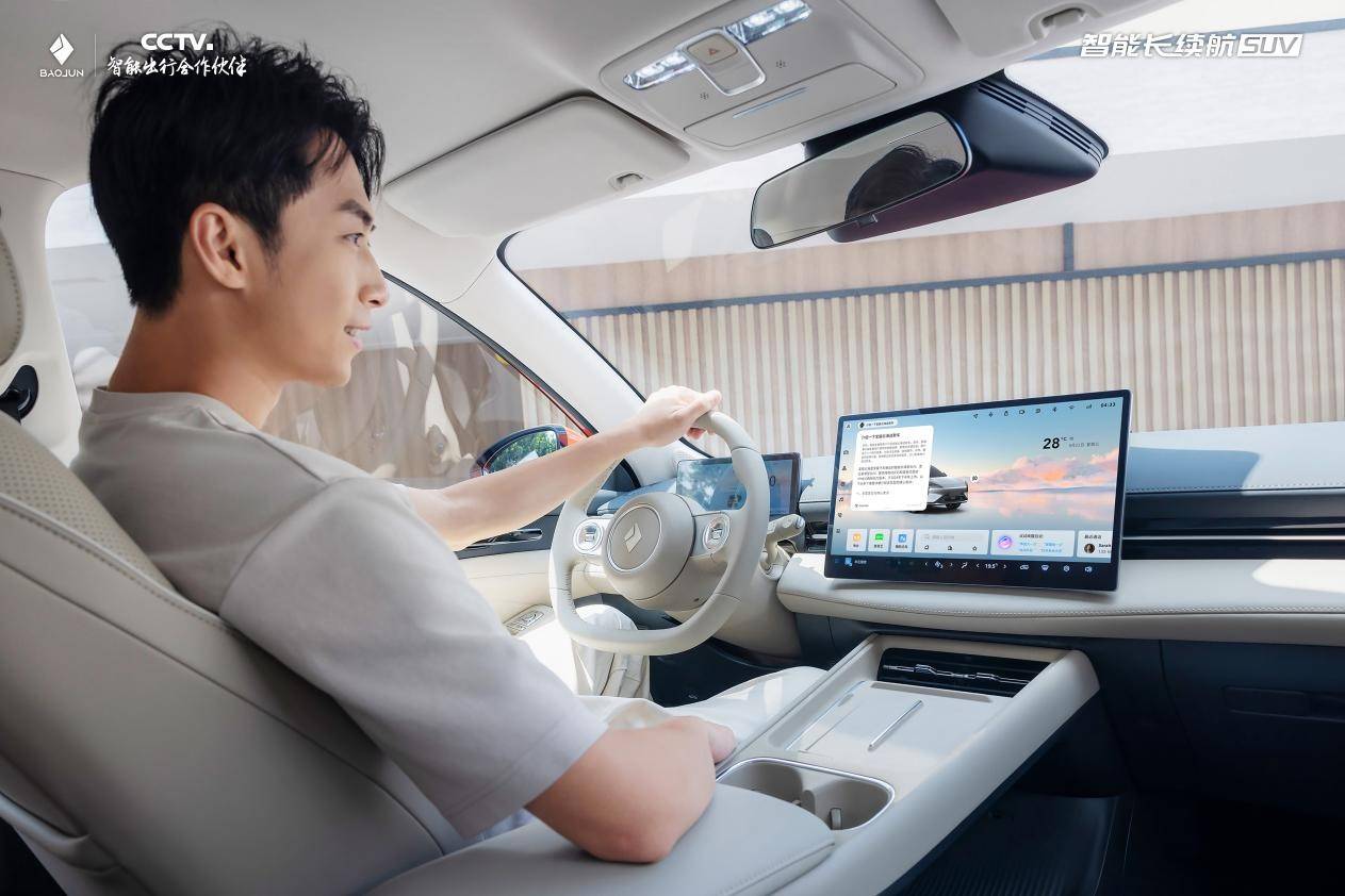 宝骏云海座舱内部采用流线环抱美学设计,并提供了全新的云霞米、云暮黑双色内饰。配备8.8英寸全液晶仪表与15.6英寸中控屏幕,搭载灵语智能座舱,车机UI全面焕新,并与AI大模型融合DeepSeek,覆盖8大方言和12种重口音。新增露营/小憩模式、应用商店与壁纸商城。