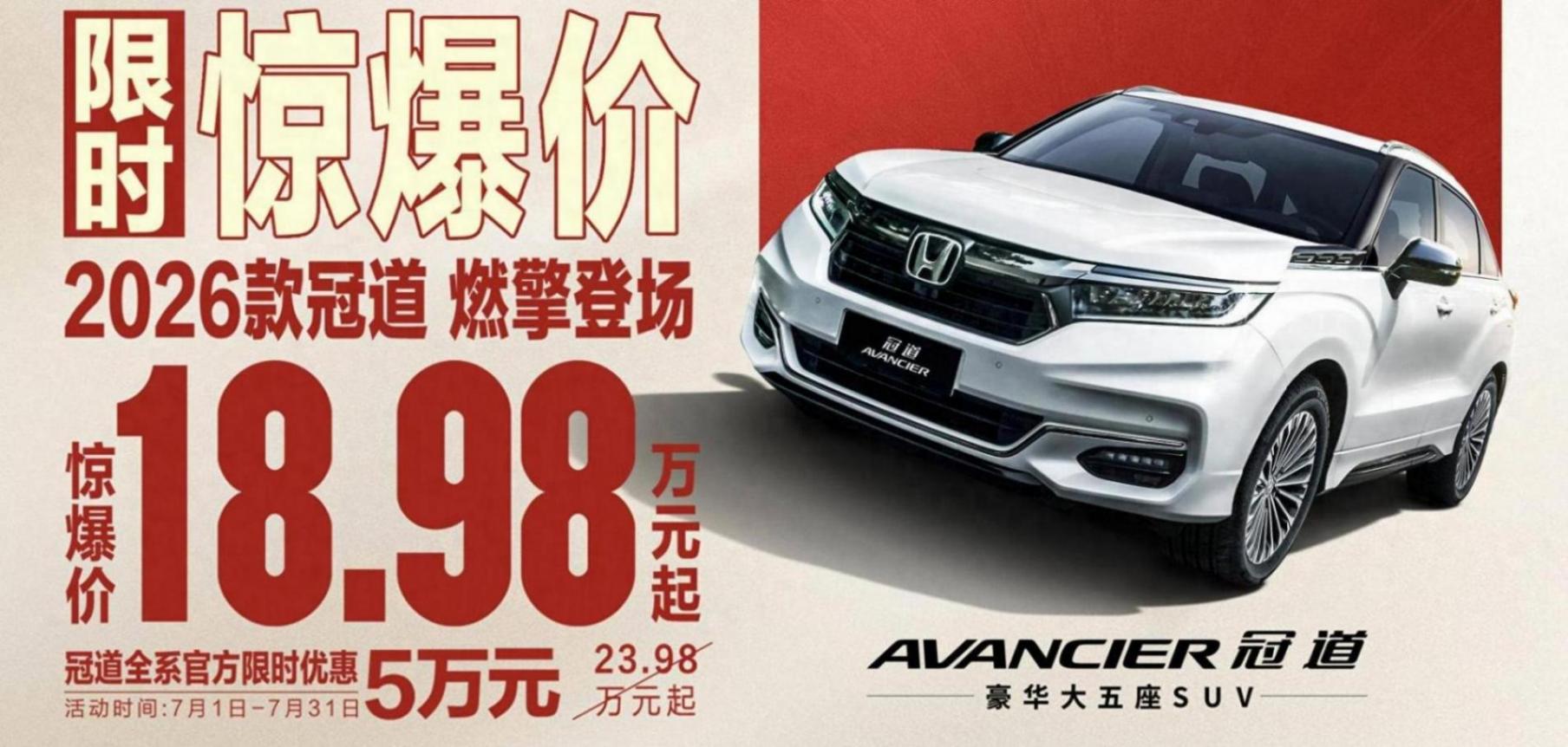 今天想跟大家聊聊一台经典日系家用SUV--广汽本田冠道,因为这台曾经的“加价车”现在非常划算,官方限时直降5万元,原指导价为23.98万-32.98万元,现在直接杀到18.98万元起。