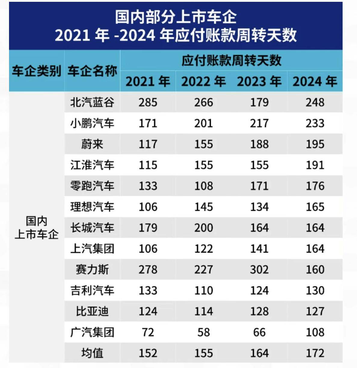 部分汽车经销商为缓解资金压力,被迫低价抛售,进一步加剧了亏损。价格战隐蔽的危害也在持续向供应链转嫁压力。2024年32家整车企业平均应付账款周转天数达109.74天,远超日系、德系、美系合资车企30-70天的水平。这种超长账期意味着供应商要等待近四个月才能收到货款,严重影响了现金流和再生产投入。