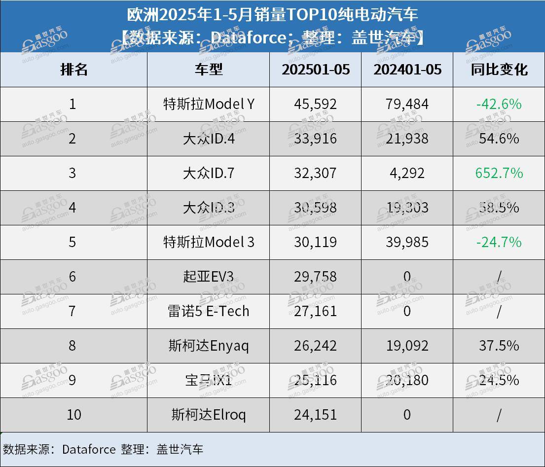 特斯拉尤其明显。尽管该公司首席执行官埃隆·马斯克辞去了他在美国政府效率部中的职位,把更多时间花在自己的公司,但特斯拉的销量低迷仍在继续。5月份,特斯拉在欧洲的销量同比下降了28%,是销量降幅最大的汽车制造商之一。