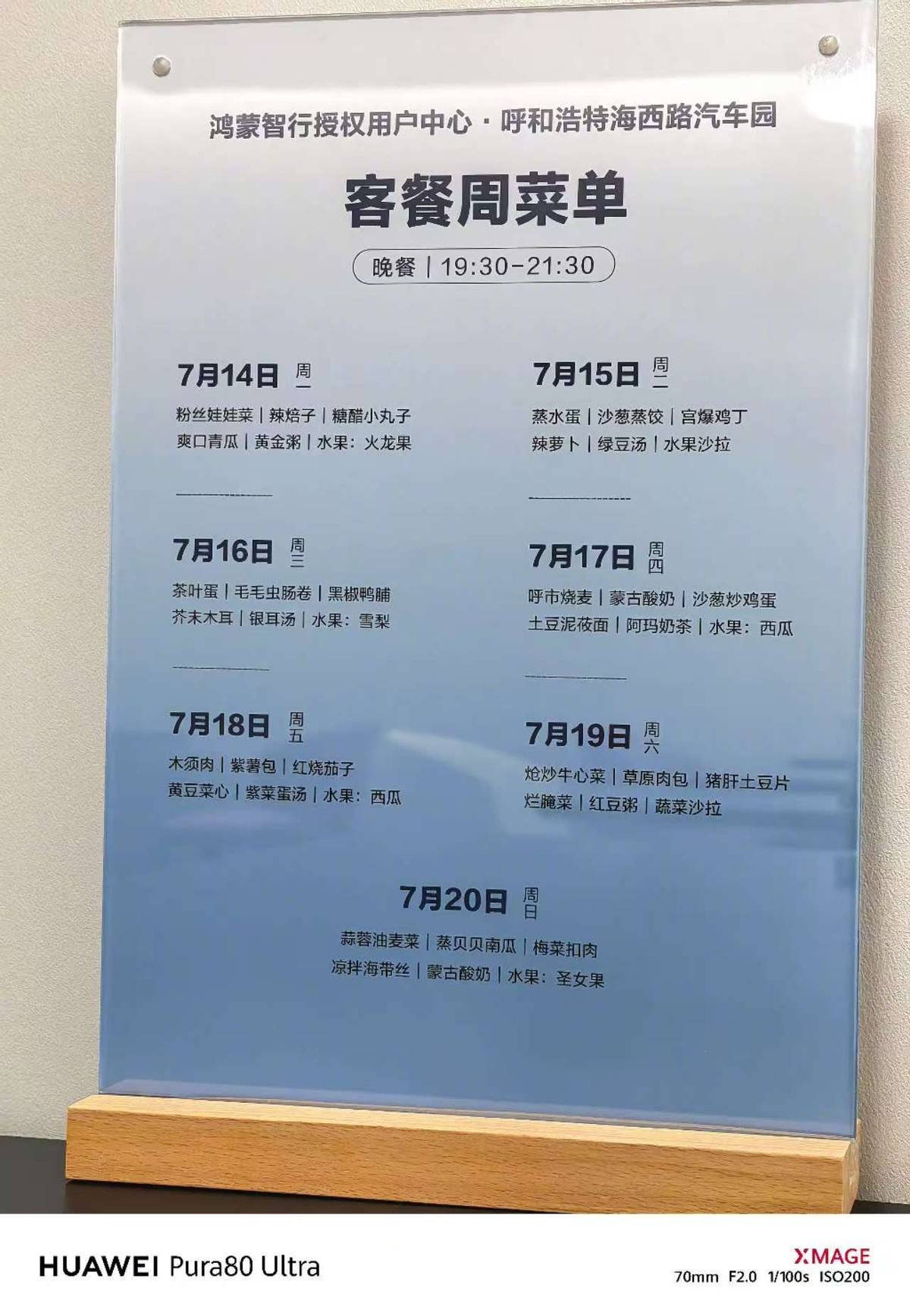 鸿蒙智行用户服务中心会为车主提供免费晚餐,而且菜单每日更新,还会做地域化定制。比如内蒙古中心提供特色烧麦,广州会搭配糖水,四川门店会有麻辣小面。官方说法是成本单餐超50元,还真不是普通对付一顿。