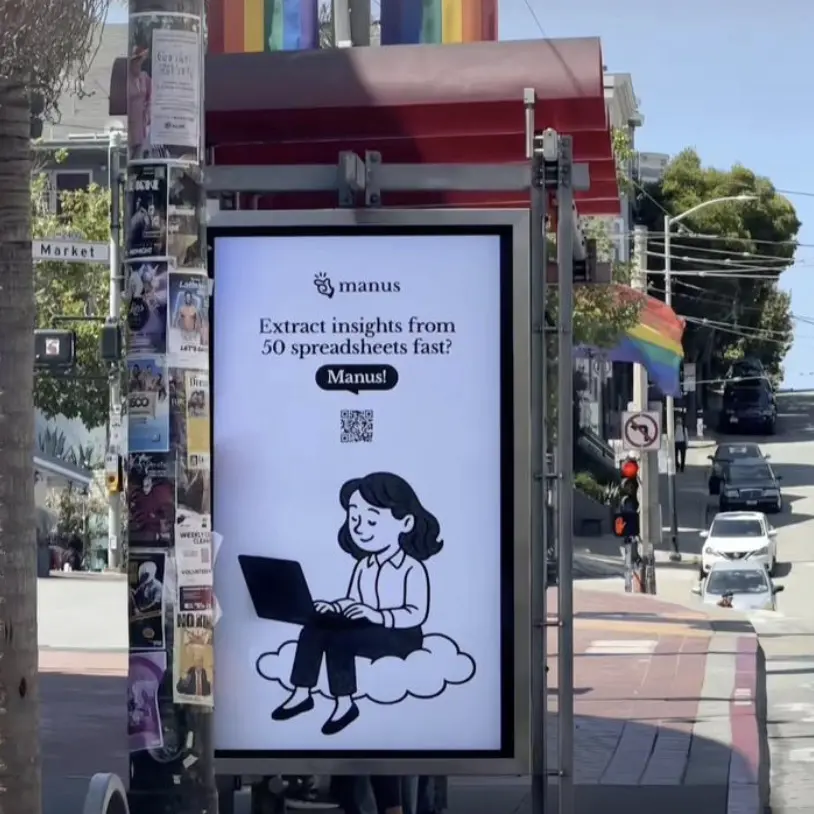 今年初大火的Manus,最近就开始在海外的港口码头、地铁投放线下广告,以招聘人才、宣传产品。