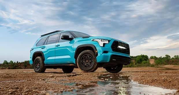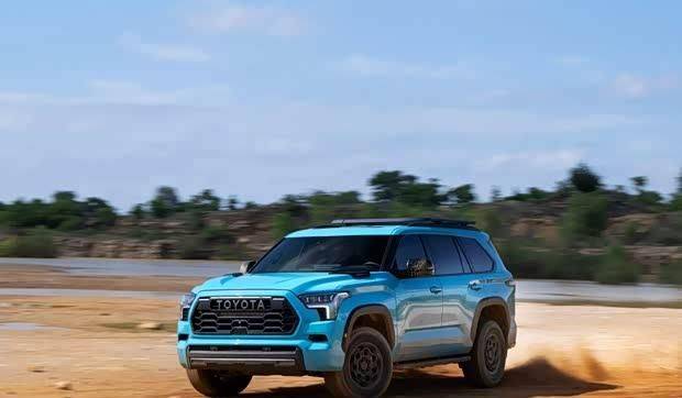 外观方面,新款红杉延续了现款车型硬朗霸气的设计语言,TRD Pro版本新增了独特的湖蓝色车漆选项。这款全新配色比现有的红色车漆更具视觉冲击力,进一步强化了整车的越野气质。整车线条依旧充满力量感,与强大的动力系统相得益彰。