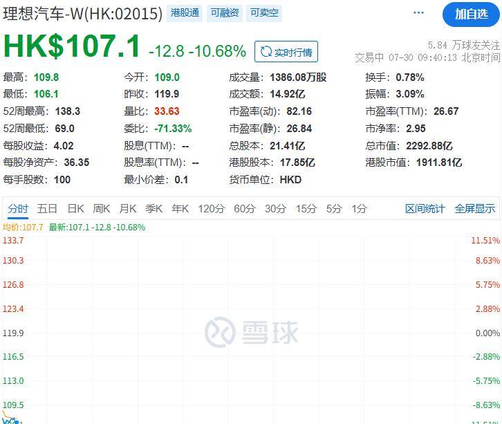 7月29日晚,理想汽车首款纯电SUV——理想i8正式发布。新车共推出Pro、Max、Ultra三个版本,售价区间为32.18万至36.98万元,将于8月20日开启交付。然而,在新车发布的同时,理想汽车美股股价却出现了波动,盘前一度上涨超6%,此后一路下跌,截至收盘跌幅超6%。此外,7月30日上午,理想汽车港股开盘即暴跌超10%。