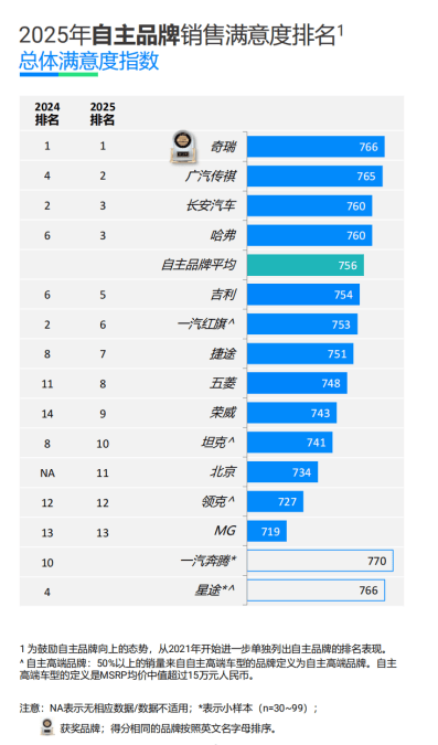 2025年,奇瑞在J.D.Power刚刚发布的销售满意度排名中,再度蝉联自主品牌第一!