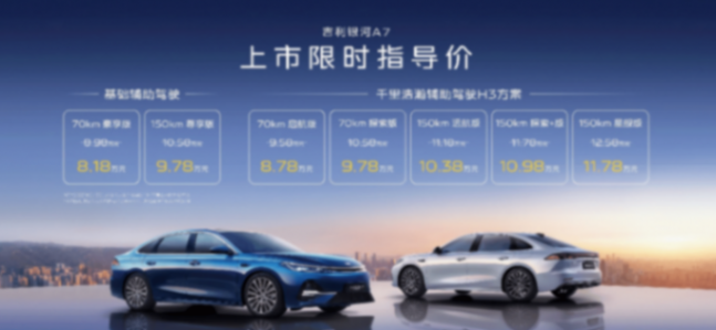 值得一说的是,考虑到用户对“增加基础辅助驾驶版”的强烈呼声,银河A7选择将辅助驾驶决定权交还给用户。在预售发布的千里浩瀚辅助驾驶版外,还加推70km豪享版和150km尊享版两个版型,质价比更加突出,也更顺应用户的心意。