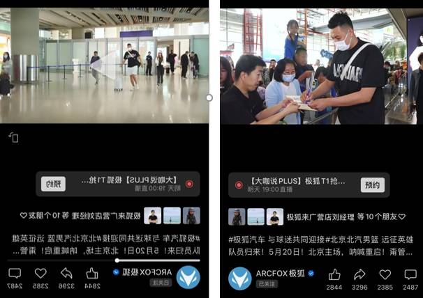 情感营销引共情:发布极狐汽车与粉丝在机场共同迎接北京北汽男篮远征归来等系列情感视频,为男篮队员加油打call,强化极狐汽车和男篮队员的情感链接。