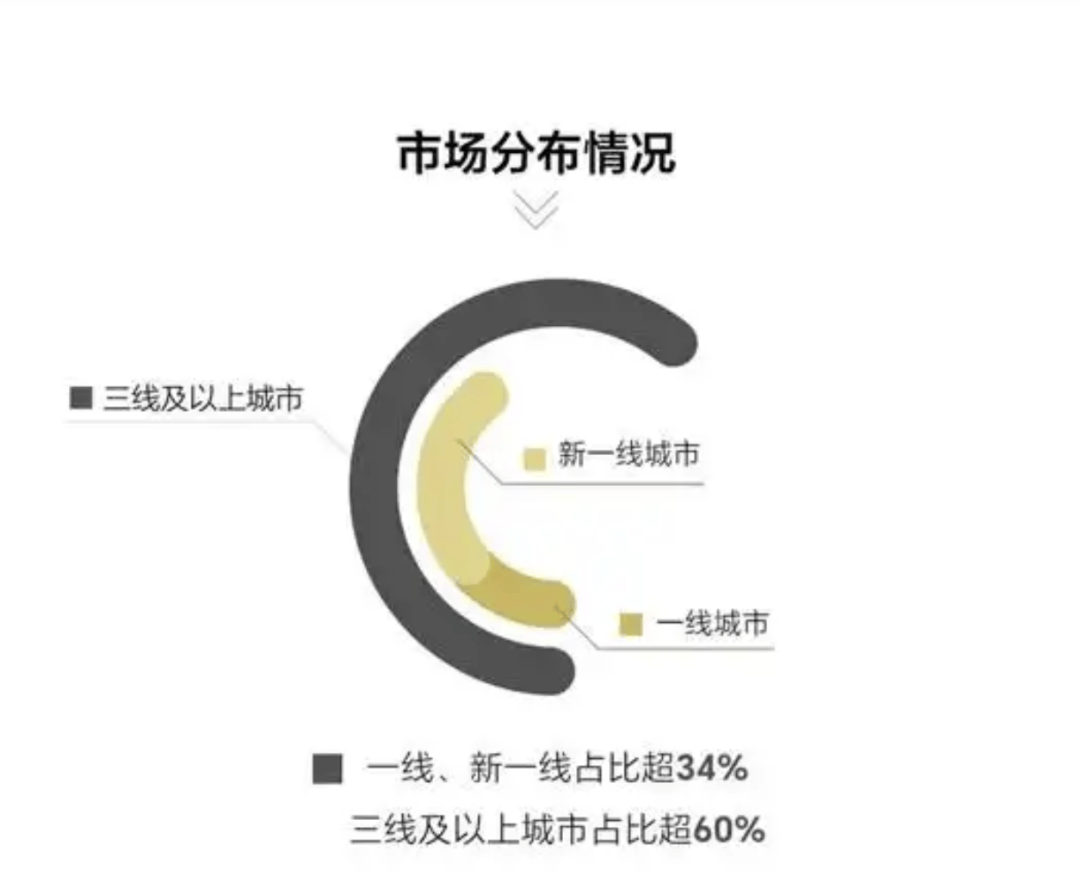 3、市场分布:一线、新一线城市用户占比超34%,三线及以上城市占比超60%,说明其在各级城市都受到了广泛认可。