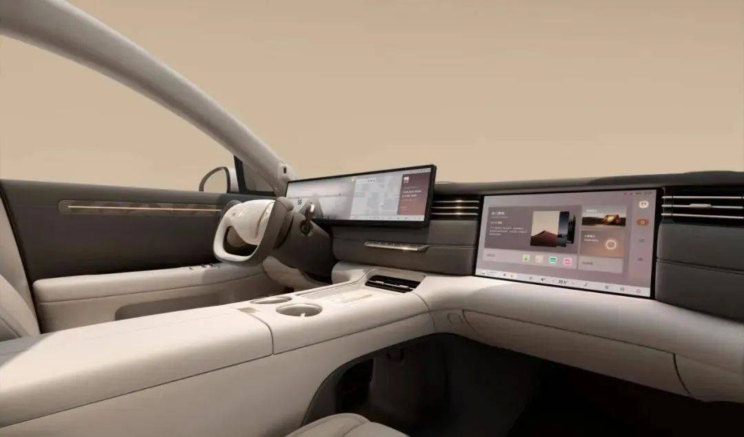 这次中期改款,第一件事就是砍掉这块电动升降大屏,改成了固定悬浮式的联屏,降低机械故障率,同时支持更多角度的优化背光。