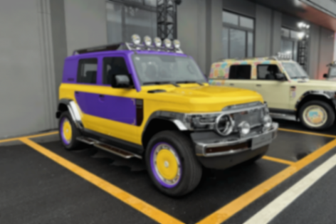 iCAR V23算是小火一把,所以我们看到,新车整体的外观基本延续其设计手法,相对硬朗且复古,两侧是圆形灯组,中网装饰条上有iCAR车标,下方则为非常粗壮有力的黑色前保险杠,该有的越野视觉效果还是到位的。