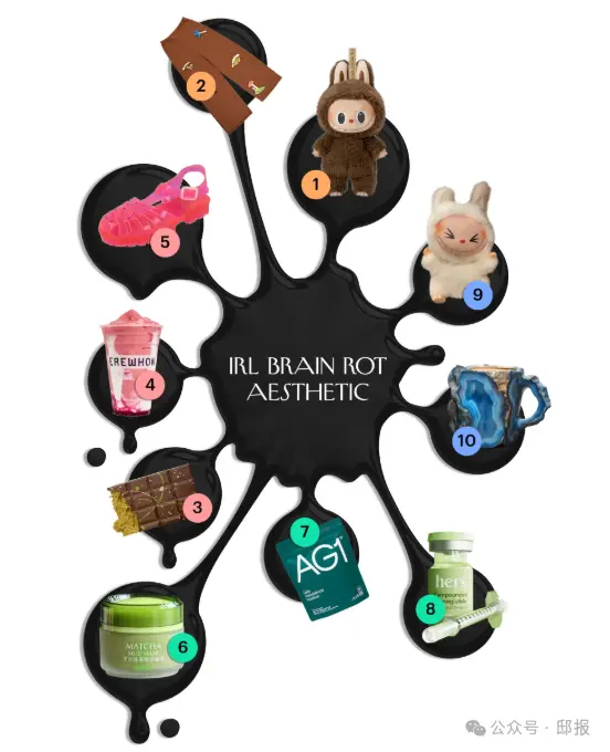 我一直把这种Labubumatchadubaichocolate风潮看作是一种 现实版“脑腐烂”(IRL Brain Rot):一种确实存在于物理世界,却没有互联网就无法理解的文化,它由一系列符号与信仰构成,并紧贴着“后数字时代的自我”。我们像更换头像一样更换 Labubu 玩偶;我们把源自迷因的药膏涂抹在身上,仿佛它们能赋予我们互动的魔力。至于“好品味”,那根本无关紧要。