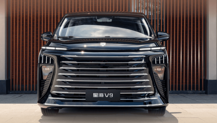 星海V9越享系列的外观升级,首先体现在气场的全面强化。前脸采用多幅横向镀铬饰条填充的中网,与分体式大灯形成巧妙呼应,不仅增强了车头的横向延展感,更通过金属质感与光影变化营造出强烈的视觉冲击,让整车在商务场合中尽显沉稳大气。
