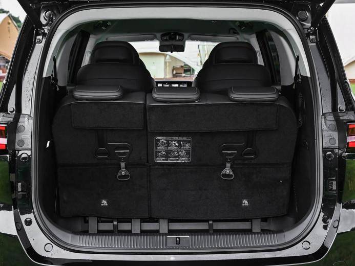 侧身设计同样暗藏巧思,分段式腰线随车身走势灵动起伏,打破了传统MPV的臃肿感;D柱上的波纹装饰则在细节处注入时尚基因,为整车增添了一抹独特的韵律美。车尾的贯穿式尾灯堪称点睛之笔,不仅提升了夜间行车的辨识度,更与顶部扰流板形成层次分明的视觉效果,将精致感与运动感完美融合。
